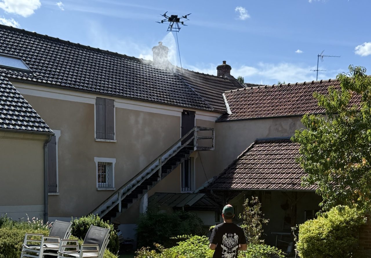 Notre système de nettoyage par drone à haute pression a été conçu pour révolutionner l’entretien des façades et des toitures, en offrant une alternative performante, sécurisée et respectueuse des ouvrages, sans recours à l’échafaudage ni à la nacelle.